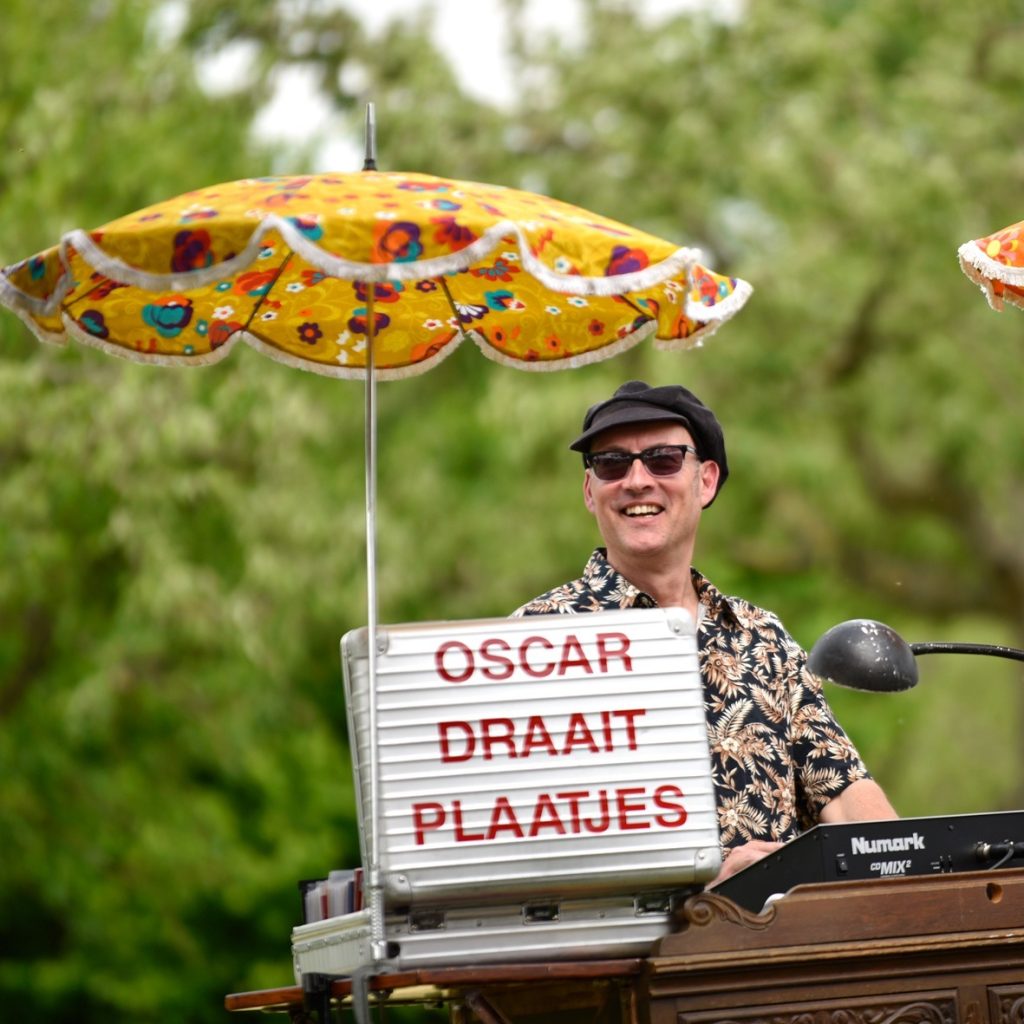 Oscar zorgt voor de vrolijke noot tijdens het festival. Hij draait op een zeer bijzondere draaitafel oude singeltjes, jukebox, soul, funk, disco, Franse Chansons, jazz en pop. Kortom: eigenlijk alles! Dein dus maar lekker mee…
